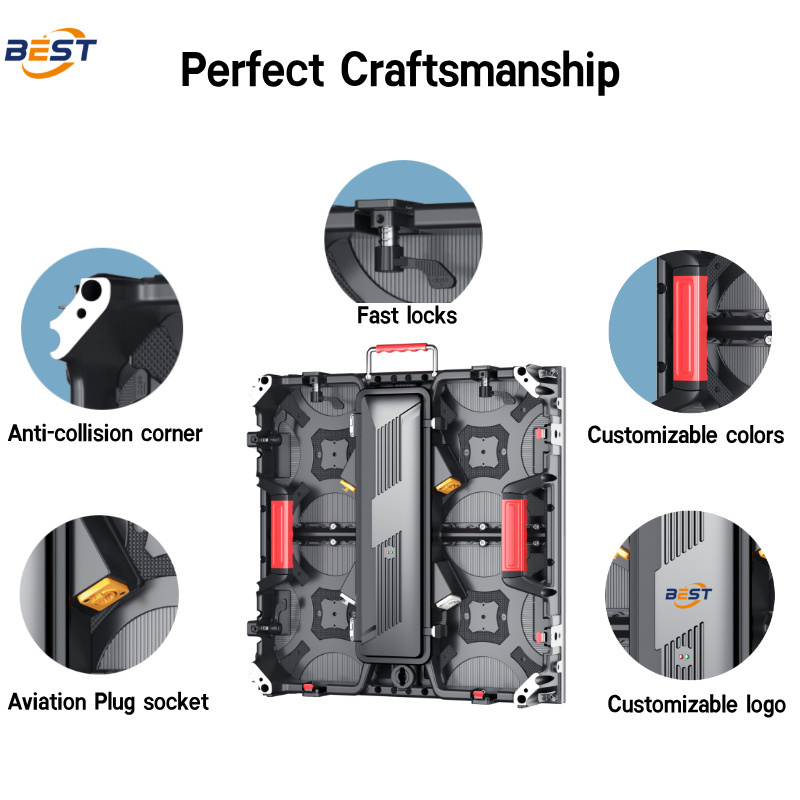 10秒モジュールアセンブリ:超軽量ダイキャストアルミニウムパネル(500×500mm)とクイックロックにより、迅速なレンタルLEDスクリーンの展開が可能になります。1人で4Kウォールを30分で構築できます。